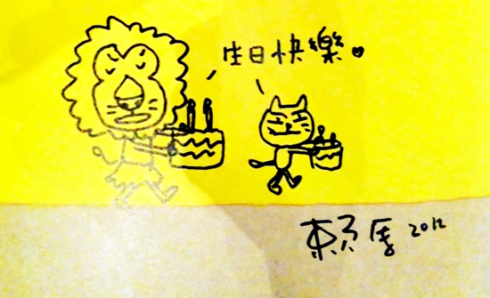 賴馬在農曆生日幫我畫的獅子和貓。:D