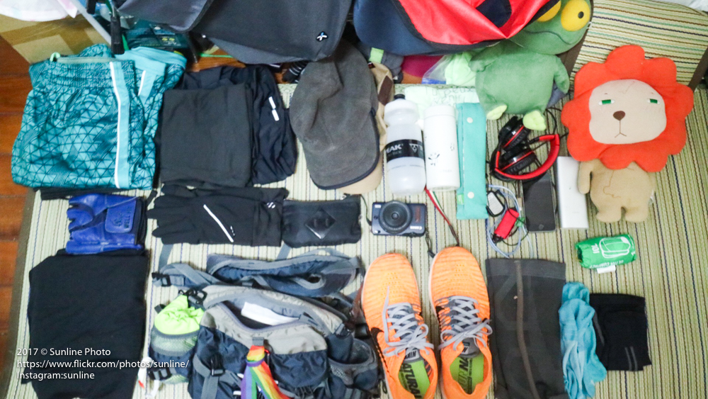 褲子就打籃球的球褲、鞋子就穿我這幾年很喜愛的NIKE free系列、上衣是迪卡儂買的短袖運動衣,如果太陽大得會曬黑,我就會穿Life 8的背心,因為我想把我整個手臂曬成一樣顏色;如果天冷會穿長袖,也是迪卡儂的,B’TWIN系列(網路找不到連結了。)而通常我會加件運動緊身背心在所有短袖或背心裡,天冷相當保暖,天熱也可以適當排汗。(天冷的時候緊身背心真的很好用。)如果要穿長褲,大概也加個緊身長褲在短褲裡,甚少穿長褲。