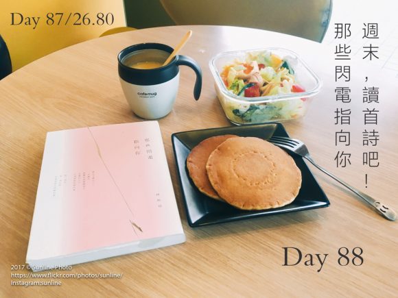 我大概就是個浪漫成性的人。整天滑手機滑久了沒新文可以讀也覺得無聊。一百天裡我讀完一本馬世芳的《歌物件》(買了兩年了還沒讀)、松本大洋的漫畫《Sunny(1)》、Douglas Kennedy的《五天》,也還讀過其他書,像是林琬瑜的詩集《那些閃電指向你》,但都沒讀完,最後還是本性難移地玩起手機。
