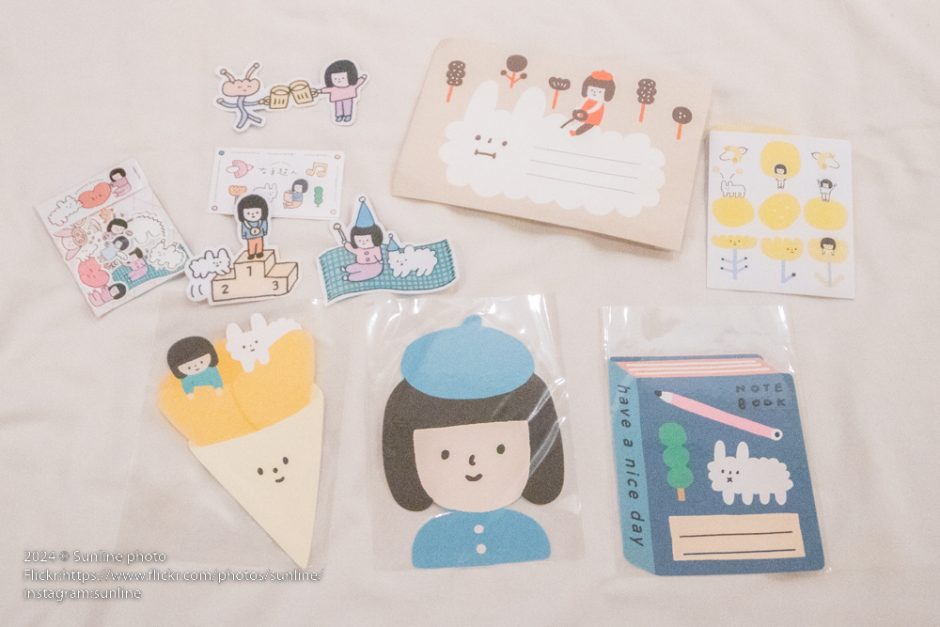 我有特別買了日本來的創作者的東西,沒人的攤位我也會多看幾眼,喜歡的有買!但的確是年紀大了,比較不買展現自我的東西(四十五不需要展現自己了,給誰看XDDD)買了很多明信片、卡片、資料夾,對我來說是實用的東西,我偶爾會寄東西給案主,有時寄東西給朋友,都用個便利貼寫字實在醜死了,買些明信片、卡片來寫好一點!(雖然我也有做,但我總不好每次都用同一張寫給朋友,哈哈哈哈庫存很多啦!)